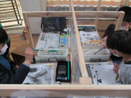 6年生は、図画工作科で墨絵に挑戦しています。墨の濃淡や「ぼかし」「かすれ」等、いろいろな表現方法を試しながら描きました。