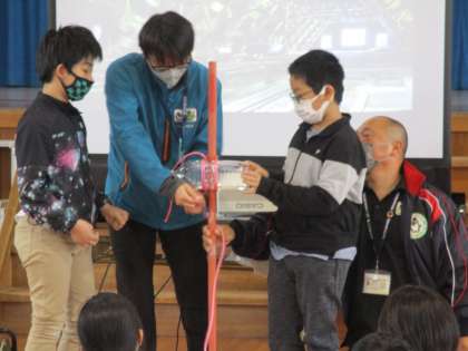 自然体験活動の事前活動として、立山青少年自然の家の職員の方が出前講座に来てくださいました。