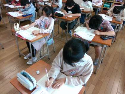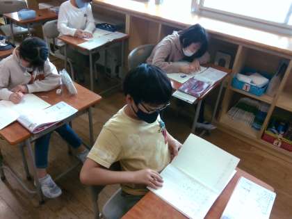 繰り返し漢字ドリルを用いて、漢字のノートに書き取りの練習を行っています。何度も繰り返して、新出漢字の定着を目指しています。