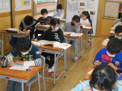 道徳科では、教材を基にして、普段の生活で家族にしてもらっていることと自分が家族のためにしていることについて振り返りました。