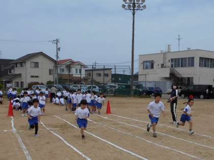 子供たちは、体育科の学習で50m走に挑戦しました。これまで、スタートダッシュや腕の振り方等の練習をしてきた成果を発揮し、ゴールまで力一杯走りました。