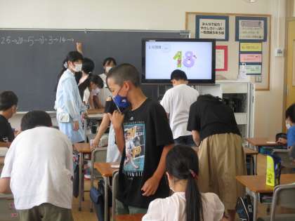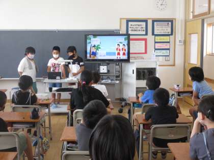 イベント係とお笑い係が出し物をしました。イベント係は、ビンゴゲームとクイズ、お笑い係は、お笑いトークをしました。どちらの係も、クラスのために事前に準備を進めていたようで、素晴らしかったです。おかげで、クラス全員が楽しい時間を過ごすことができました。
