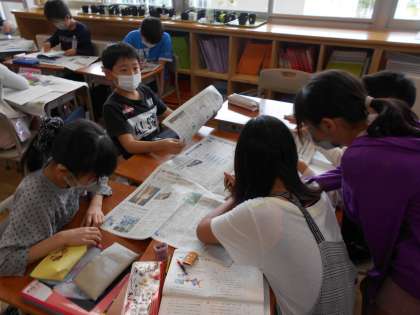 国語科で和語・漢語・外来語について学習し、それぞれの違いについて理解しました。身の回りにある文章には和語・漢語・外来語がそれぞれどのくらい使用されているのか疑問をもち、グループごとに新聞から探す活動をしました。