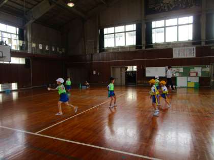自分のチームのお宝を相手の陣地により多く運べるように、相手の交わし方を工夫したりチームで作戦を考えたりして、楽しんで活動しています。