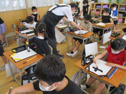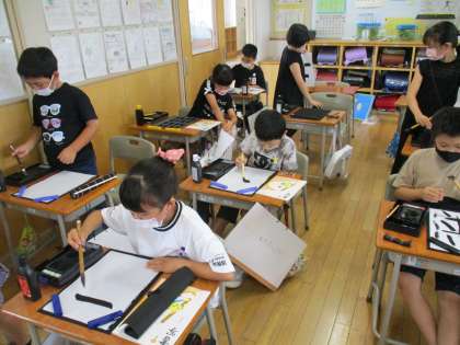 これまで練習してきた横画、縦画を生かし、「土」の字を書きました。