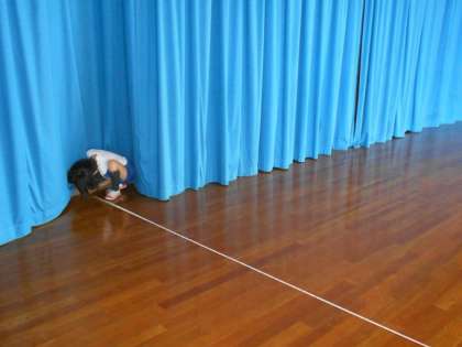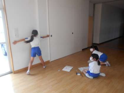 算数科「長い長さをはかって表そう」では、巻き尺を使って長さを測りました。長さの見当をつけてから実際に測ると、「意外に短い」「10mもあった」など、体験を通して長さを捉えていました。