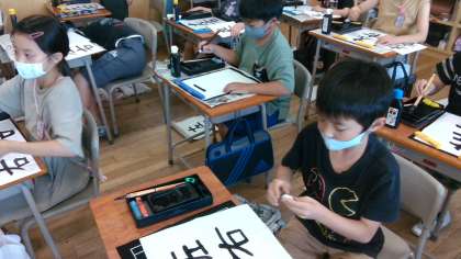筆順と字形の関係を確かめ、毛筆で「左右」を書きました。集中して一画一画心を込めて、書いている様子が伝わってきました。