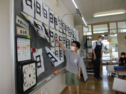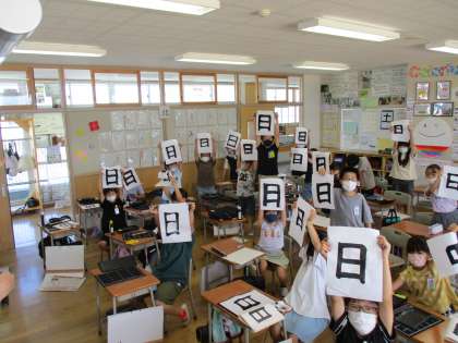 今回は、「日」を書きました。最初は、習字道具の準備から始まった書写の学習でしたが、今では、一人一人気持ちを込めて、立派な字を書くことができるようになってきました。
