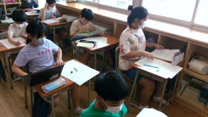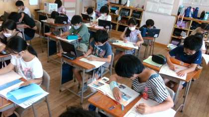 環境問題にについて調べた内容を新聞の形にして報告しています。見出しと本文のレイアウトや文字の大きさに気を付けて、自分が伝えたい内容を分かりやすく報告しようとしています。