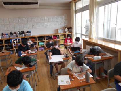 生活の中で心に残っていることを思い浮かべました。その時の様子や気持ちを、工夫して絵で表しています。