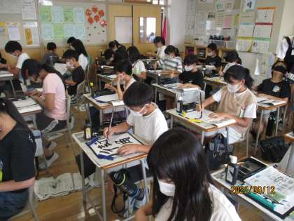 書写の学習では、「街角」の清書を行いました。自分の字と真剣に向き合い、集中して取り組みました。