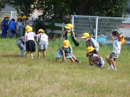 生活科の学習で、生き物を探しに行きました。友達と誘い合って一緒に探したり、知っている虫のことを話したりしながら過ごしました。