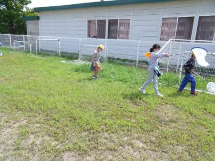 子供たちは、ジャンプしているバッタを上手に捕まえ、大はしゃぎでした。