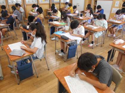 割り算の性質を使って、「正確に」「簡単に」「速く」計算する方法を考えました。あまりがある場合等、気を付けなければいけないことを意識しながら集中して計算練習に取り組みました。