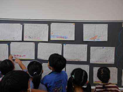 国語科「かずとかんじ」の学習で、「かぞえうた」を作りました。出来上がったものを紹介したり、友達と聞き合ったりしました。「もっと読みたいな」「今日の音読はこれがいいな」という声がたくさん聞こえてきたので、今日の宿題としてお家の方に聞いていただくことにしました。
