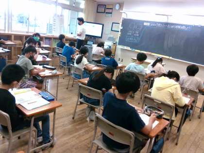 干したあとのタオルと干す前の濡れたタオルの様子を比べて、タオルに含まれていた水分はどこにいったのかを予想しました。ノートに自分の予想をしっかり書いて、これから予想を確かめるための実験計画を立てていきます。
