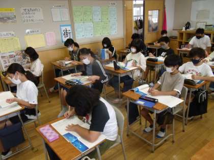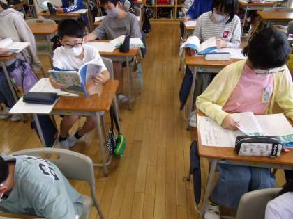 国語科で「やまなし」の学習をしています。今日は、5月と12月の場面の対比しているところを考えました。みんな集中して取り組んでいました。