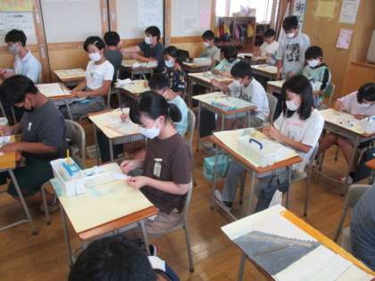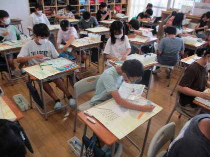 図画工作科で、校舎の絵を描いています。6年間生活してきた校舎に思いを馳せ、丁寧に取り組んでいます。