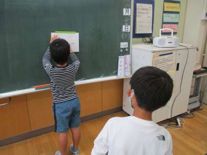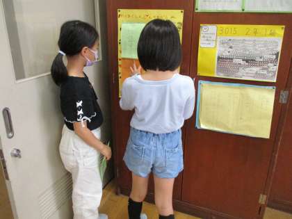 係活動では、学級新聞を作って掲示したり、イラスト大会を開く計画をたてたりしました。各係のリーダーが活動をする時間を順番に用紙に記入し、みんなに分かりやすくしました。