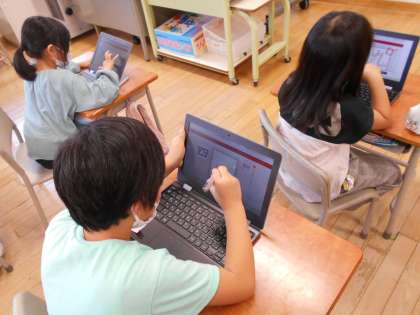 クロムブックを使って、これまでに学習した漢字の練習をしました。書き順や形に気を付けて丁寧に書きました。