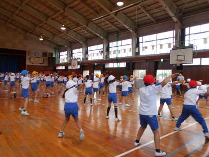 スポーツフェスティバルに向けて、ダンスの練習をしました。音楽に合わせて大きく動いたり、仲間とのタイミングを確認したりして楽しく踊りました。