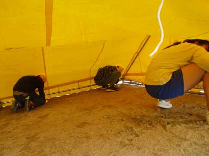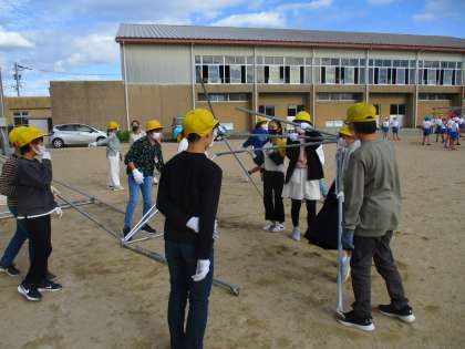 明日から始まるスポーツフェスティバルに向けて、6年生でテントを準備しました。安全に気を付けて、みんなでテントを運びました。