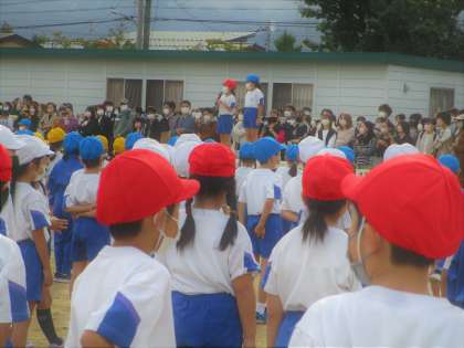 6年生からのエールを一生懸命に聞いていました。これからの種目への意欲を高めていました。