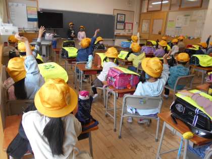 帰りの会で、今日クラスで見付けた「おみごとさん」を発表しています。友達のがんばりや優しさを認め合える姿が素晴らしいです。