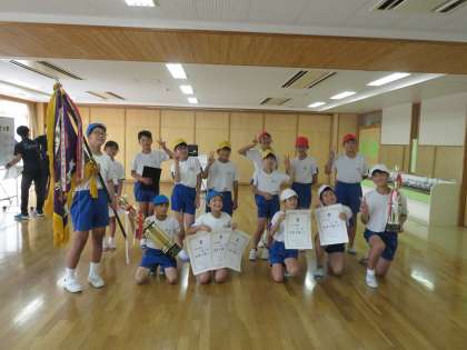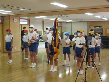 全校閉会式を行いました。低・中・高学年と総合の順位を発表し、表彰しました。