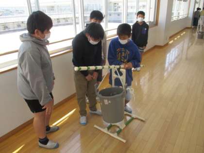 理科で「てこのはたらき」を学習しています。小さな力で大きな力を出す原理を、実験を通して感じています。