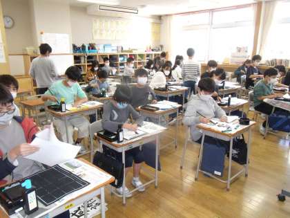 今までの書写の学習を生かし、「感謝」を書きました。筆遣いや字形のバランスに気を付けながら取り組みました。
