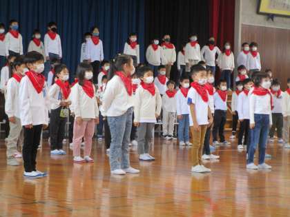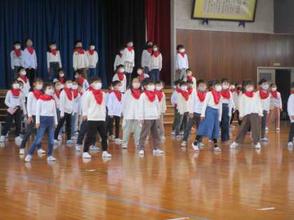 実際の衣装を着て練習しました。口を大きく開けて元気よく歌うことを意識しながら練習を頑張っています。