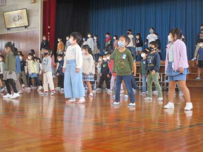 本番まで1週間を切りました。移動と合わせて本番のように練習しました。日に日に子供たちの歌声も大きくなってきて、毎日元気な声が響いています。