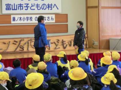 これからお世話になる職員さんに「よろしくお願いします」のあいさつをしました。代表者は、これから始まる活動への意気込みや楽しみを話しました。