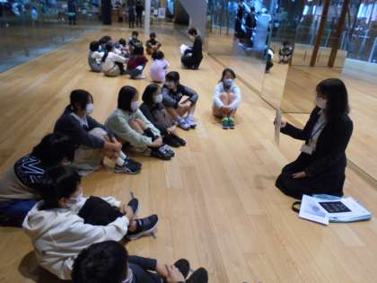 作品を見学した後は、友達と作品について話し合ったり作者についてくわしく聞いたりして、作品をより深く理解しようとしました。