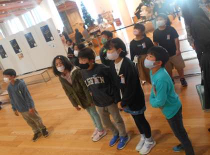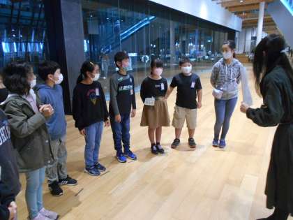 美術館で作品を鑑賞し、自由に思ったことを伝え合いました。「星みたい」「帽子みたい」「桜みたい」等、同じ作品を見ていても、一人一人感じ取り方は違うことに気付きました。
