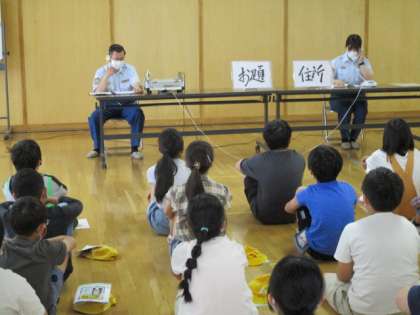 本校では、1学期にB・F・Cバッジ授与式、防火・防災教室を行うなど、消火器使用体験や通報電話体験を通して防火の意識を高めています。