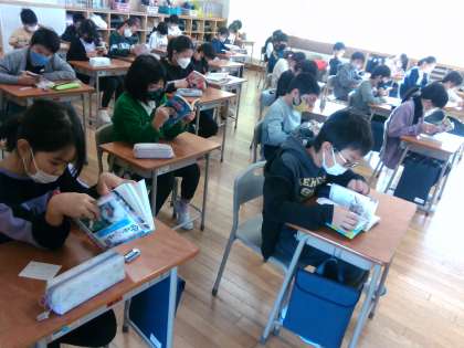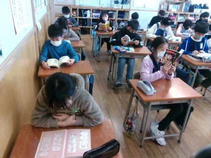 朝の会が終わって15分間読書をします。どのクラスでも静かに集中して本を読む姿が見られます。