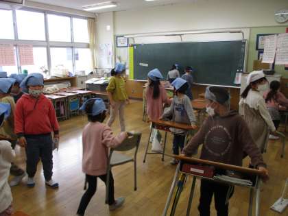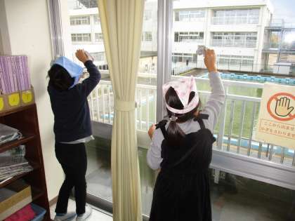 清掃の時間は、自分で汚れているところを見付け、友達と協力しながらきれいにしようと取り組んでいます。