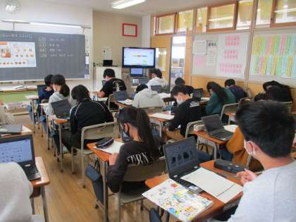 家庭科の学習で、1食分の献立を立てました。栄養バランスチェック表を活用して、献立を立てました。