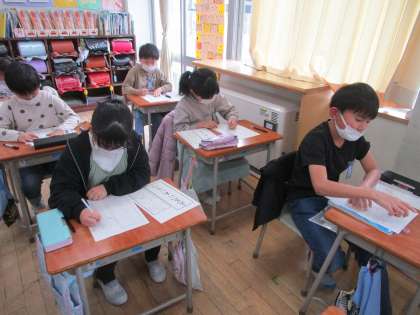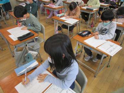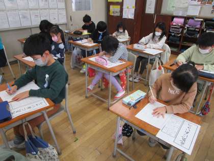 フェルトペンや鉛筆を使って書初めの練習をしました。背筋を伸ばして丁寧に書いている姿がとても立派でした。