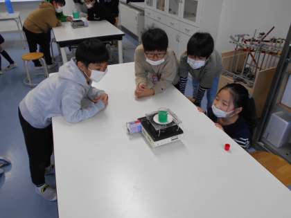 金属のあたたまり方と水のあたたまり方の実験をしました。