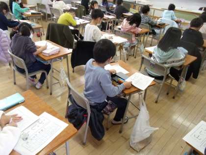 3学期初日に行われる書初め大会に向けて、練習を始めています。お手本を見ながら、一文字一文字丁寧に書いています。