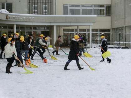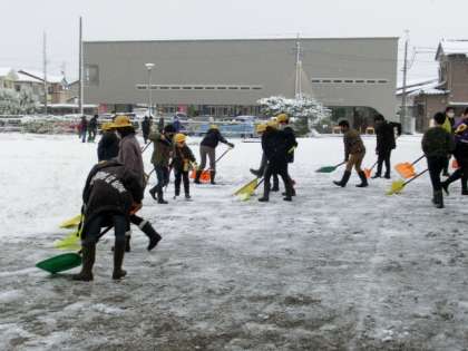 6年生が、今年度最初の除雪を行いました。有志の児童が玄関前の集合スペースや避難経路を確保してくれました。