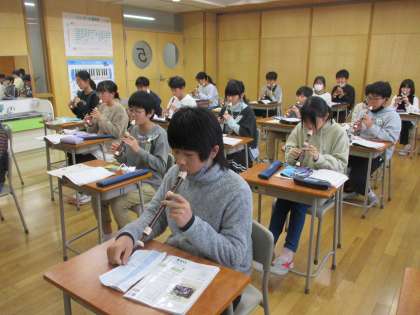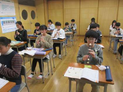 今学期最後の音楽の授業でした。リコーダーの基本を確認して、一人ずつ順番に演奏しました。