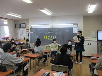 自分のおすすめの本を紹介し合うビブリオバトルをしました。最後には、学級のチャンプ本を決めました。