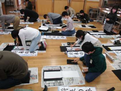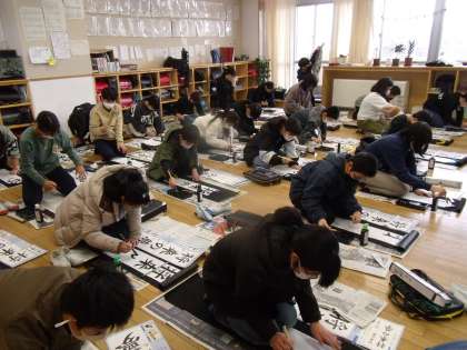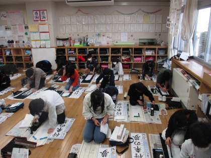 6年生は、毛筆で「将来の夢」という字を書きました。一画一画に集中し、真剣な気持ちで取り組みました。