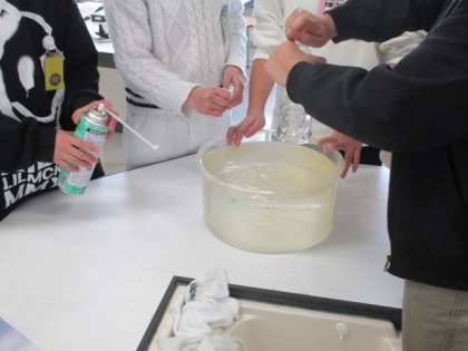 水に二酸化炭素を溶かして、炭酸水を作りました。6年生の理科では、水溶液の性質を調べるために、いろいろな実験を行っています。