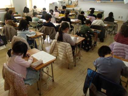 1年生は、初めての漢字チャレンジテストに取り組みました。これまでの練習の成果を発揮しようと、真剣に取り組みました。
