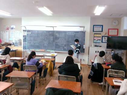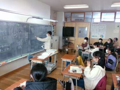 正方形の個数と棒の本数の関係を図や表、式で表しました。比例の学習で身につけた、2つの数量の変化に着目して、答えを導き合いました。